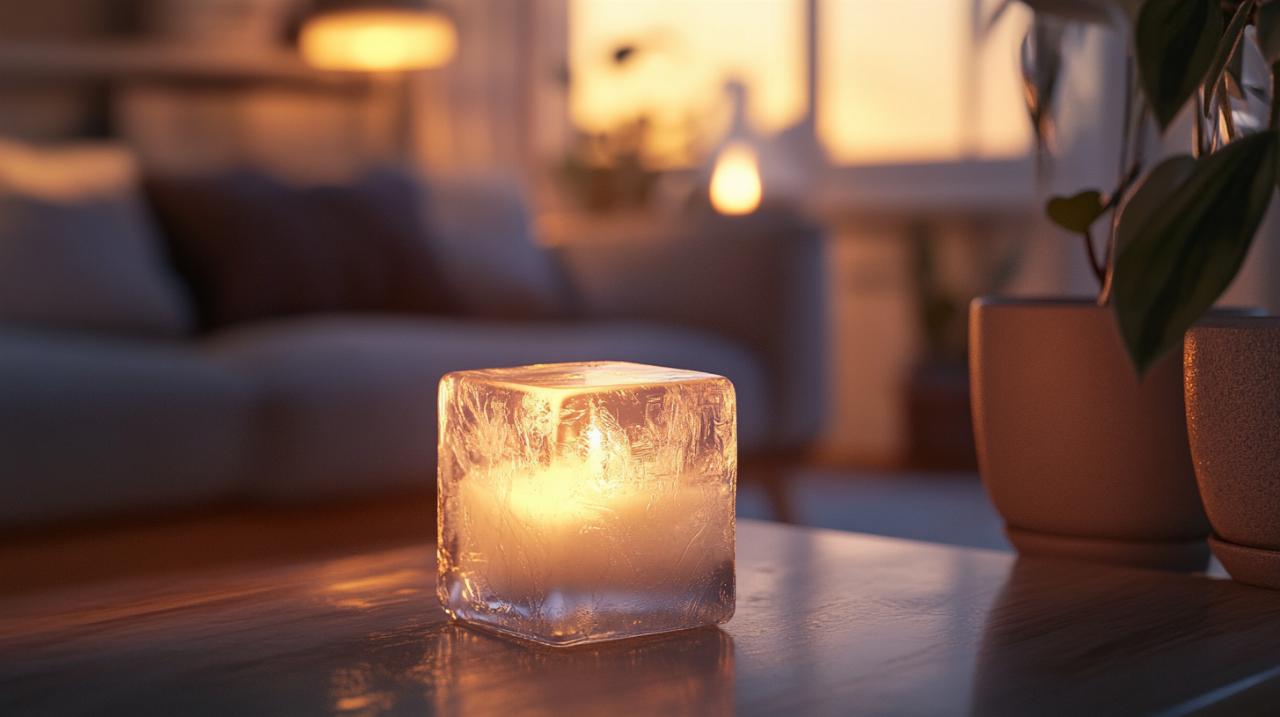 La transparence constitue l'essence même de l'effet glaçon. Pour maximiser cet aspect translucide, plusieurs stratégies se combinent. L'utilisation de cires naturellement claires, comme la cire de soja ou de coco, offre une base idéale. Le dosage minimal de colorant préserve cette transparence tout en apportant une touche de couleur. Les moules transparents permettent de vérifier visuellement l'effet obtenu avant démoulage. Certains artisans ajoutent même de petits morceaux de glace véritable dans le moule avant le coulage, créant des cavités irrégulières qui accentuent l'illusion de glace fondue une fois la bougie solidifiée. Cette technique audacieuse requiert une maîtrise parfaite des températures pour éviter que l'eau ne compromette la structure de la bougie.